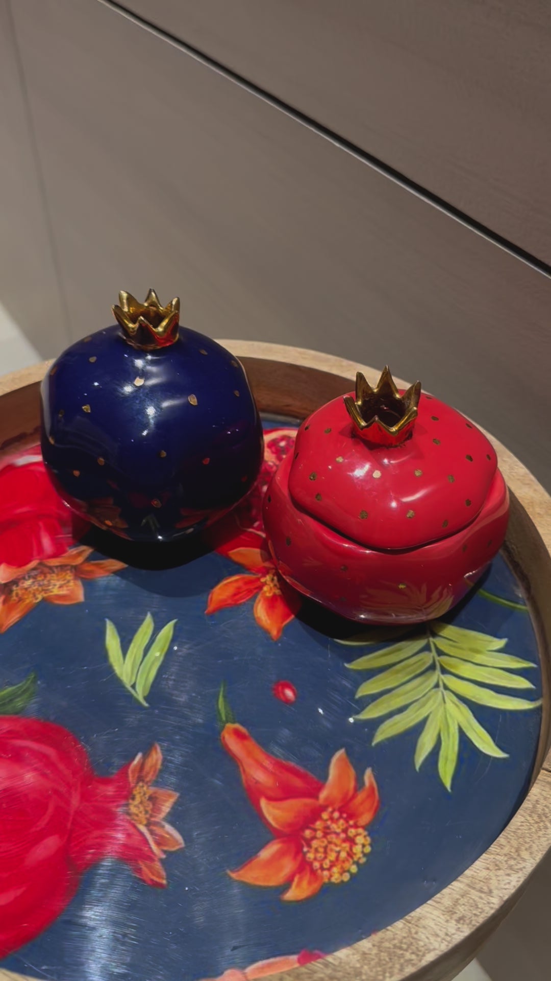 Bring both artistry and practicality into your home with our Pomegranate Enamelled Wooden Foldable Coffee Table. This beautifully crafted table features a stunning pomegranate motif, intricately etched and finished with a vibrant enamel coating. Designed to be both functional and decorative, its foldable feature makes it an ideal choice for smaller spaces or for those who need versatility without compromising on style.
